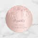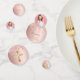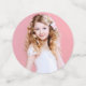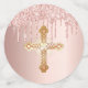Un arrière - plan d'or rose décoré de parties scintillant d'or faux rose. Personnalisez et ajoutez une date et un nom/événement. Lettres de couleur or rose foncé. Quelques jetons de confetti avec nom et date, d'autres avec une croix. Ajoutez votre propre photo sur deux des puces.