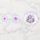 A sweet unicorn themed birthday party personalized photo, name and age confetti for a little girl. Purple, pink and rainbow design sparkles and hearts.