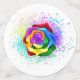 Grand rose fleuri avec pétales arc-en-ciel sur arrière - plan blanc, peint sur des éclaboussures de peinture colorée et lumineuse. 3d