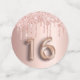 Fille et confetti féminin pour un Sweet 16, 16ème anniversaire table de fête. Un arrière - plan d'or rose décoré de parties scintillant d'or faux rose. Personnalisez et ajoutez son nom/texte. Lettres de couleur or rose foncé. Quelques jetons de confetti avec le nom et la date, d'autres avec le numéro 16 écrit avec une police de style ballon, et avec le texte Joyeux Anniversaire.