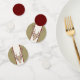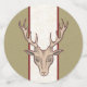Ce confetti de table a de grands cercles avec une tête de cerf mâle brun avec de grands bois sur un arrière - plan rayé de rouge foncé, blanc et bronzé. Les cercles moyens sont rouges foncés et les petits cercles blancs.
