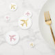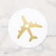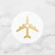 Confettis de table conçus pour une baby shower ou une bridal shower sur le thème du voyage, un mariage de destination, ou une fête ou réception de fiançailles sur le thème du voyage et de l'aventure, avec de faux avions en or avec un cœur au milieu d'un côté, et un motif d'avion de couleur personnalisée au dos, présenté ici en rose gold et rose blush.