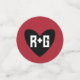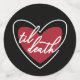 Romantique jusqu'à la table de mort confetti pour un mariage ou une fête de fiançailles pour un couple d'amoureux du métal, un couple de rocker, ou un couple décalé. Avec la mort écrite dans un coeur. Ajoutez vos initiales dans une police en métal cool et deux photos de votre séance photo fiançailles ou enregistrez la séance photo de date. En rouge et noir avec des polices blanches.