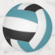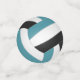 Ce confetti d'anniversaire de volley-ball pour filles ou garçons présente l'image réaliste d'un volley-ball qui a des panneaux turquoises, noirs et blancs sur le devant et le dos de chaque pièce - par katz_d_zynes