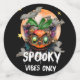 Transformez votre fête avec des confettis étranges avec un design hantant d'Halloween : "Vibes Éffrayantes seulement". Le design comprend un citrouille déplaisant entouré de chauves-souris contre une lune d'orange, qui ouvre la voie à une ambiance festive et propice à la détente.