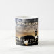 "Confiance" randonnée photo tasse à café. Dire est "Confiance : le sentiment que vous avez avant que vous ne compreniez pleinement la situation." Notre photo de silhouette originale de randonneur sur des rochers dangereux. Tous droits réservés © 2012 Alan & Marcia Socolik.