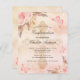 Un arrière - plan d'or rose, rustique et rustique à l'aspect rustique et rustique. Décoré de fleurs roses d'or et de rose, de roses, d'herbe de pampas, de papillons. Une grande croix dorée au fond comme filigrane. Personnalisez et ajoutez un nom et les détails.