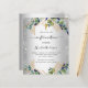 Un faux arrière - plan argenté décoré de verdure d'eucalyptus et de feuilles dorés et de parties scintillant faux argentés brille. Une croix d'or. Personnalisez et un nom et des détails de la cérémonie.