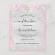Une confirmation moderne et élégante, célébrant une fille. Fond métallisé argenté faux décoré de poussière de paillettes roses fausses et d'une croix dorée. Personnalisez et ajoutez un nom et les détails de la fête. Lettres de couleur noire.