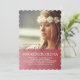 Votre photo préférée est superposée par un panneau rouge, dégradé, transparent, qui contient votre personnalisation. Les mots "confirmation de" peuvent être traînés à n'importe quel endroit, rendus plus ou moins grands (+-) ou éliminés, ce qui en fait une invitation polyvalente.