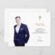 Un carte de remerciements de confirmation moderne et élégant pour elle et lui. Un arrière - plan blanc chic décoré d'une croix d'or. Personnalisez et ajoutez votre photo, merci note et nom.