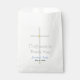 Élégante Confirmation son Merci Papier Favor Sacs avec simple croix d'argent peint à la main avec des accents d'or. Personnalisez le nom dans le script bleu et la date dans le texte noir contre l'arrière - plan blanc. Oeuvre et design graphiques d'origine © TamiraZDesigns.