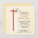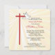 Belle carte d'invitation pour la Confirmation de votre fils. Les rayons dorés brillent derrière une croix en rouge et une colombe blanche. Le rouge est la couleur de la Confirmation et la colombe symbolise l'Esprit Saint. Personnalisez le texte pour le rendre parfait pour vos besoins pour sa Confirmation. Les angles de cette carte carré sont arrondis et ajoutent un élément cohésif aux bords arrondis de la croix.