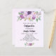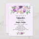 Arrière - plan violet, lavande aquarellé. Décoré de fleurs violettes et violettes aquarelles et verdure et d'une croix dorée. Personnalisez et ajoutez votre nom et vos coordonnées de réception. 1 feuille = 1 invite imprimé bord à bord.