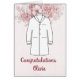 Congratulate a future doctor or other medical professional as they are awarded their White Coat. Elegant Doctor Physician White Coat Ceremony Monogrammed to celebrate and honor a physician or doctor in training. Elegant way to say congrats and honor someone at a rite of passage where the Hippocratic Oath is recited as they enter the medical profession. Features a doctors coat, name, date and field of medical work. Faux antique silver background. Monogrammed with name and add a personal message on the inside of this card. Pretty pink floral element.