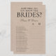 Vous Connaissez Les Mariées ? LGBTQ Fête des mariées feuille de jeu apportera beaucoup de plaisir et de rire à votre wedding shower! La page est à la fois élégante et moderne. Son design simple avec des polices noires sur papier artisanal est parfait pour tout mariage. Pour faire de ce jeu votre propre sélectionnez Personnalisez ce modèle et tapez les noms et initiales des épouses.