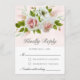 Carte RSVP mariage classique et élégante avec roses d'aquarelle rose et blanc et design vert feuillage.