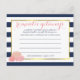 Laissez les invités de la douche nuptiale partager leurs idées de vacances préférées pour le couple heureux, avec ces cartes sucrées. Personnalisable avec le nom de la mariée et la date de la douche. Placez une cheminée à l'entrée de l'événement, passez-les ou laissez-en une à chaque endroit. Fait un beau gardien pour la mariée, et une grande alternative pour les épouses qui veulent quelque chose d'un peu différent des jeux habituels! Le design est composé d'un arrière - plan bleu marine de minuit, d'une bordure en faux or et d'un groupe de pivoines aux jolis tons bleus. Coordonner avec nos fournitures de bureau, produits en papier, articles de maison et accessoires de bureau Midnight Blush Peony.