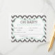 Passez ces cartes à votre baby shower pour un jeu amusant que vous obtenez à chérir pour toujours! Doté d'un arrière - plan rayé gris foncé et blanc chevron et d'accents vert menthe.