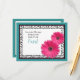 Le texte de cette carte de recette turquoise, noire, blanche et rose de la marguerite "mariage réussi" pour la mariée est entièrement personnalisable. Vous pouvez le modifier à l'aide de l'option personnalisée. Pour effectuer des modifications plus poussées de la carte postale, y compris la modification de la police, de la couleur de police ou de la disposition de la police, choisissez l'option personnaliser. Cette carte de recette peut être jointe à l'invitation de la douche nuptiale correspondante afin que les invités de la douche nuptiale puissent remplir le dos avec leurs paroles de sagesse pour un mariage réussi et apporter la carte avec eux à la douche comme un gardien mariage pour que la mariée soit. Vous pouvez également l'utiliser dans une invitation de fête d'anniversaire en modifiant le texte sur l'invitation et cette carte. L'invitation correspondante est présentée ci-dessous.