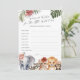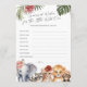 Les cartes Wild One Safari Animals Baby Girl Wives sont l'ajout parfait à tout baby shower, invitant les clients à partager leurs rêves et leurs espoirs pour la nouvelle arrivée. Chaque carte présente un design d'aquarelle charmant avec des bébés animaux de safari bien-aimés, dont un éléphant, un lion, un tigre, un raton laveur et un chimpanzé, tous nichés parmi des feuilles tropicaux pour une touche de nature sauvage. Conçues spécialement pour le baby shower d'un garçon, ces cartes captent l'esprit d'aventure et la joie d'accueillir une nouvelle vie. Dans le cadre de la collection Wild One Safari Animals, ces cartes de souhaits se marient harmonieusement avec votre célébration thématique, pour une expérience mémorable et chaleureuse pour tous.