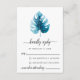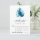 Design moderne de carte RSVP avec illustration en feuille de monstère aquarelle sur un simple arrière - plan blanc. Le côté inverse de l'invitation est en bleu profond.