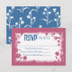 Vintage mauve rose et bleu marine carte-réponse avec fleurs sauvages peut facilement être personnalisé pour votre événement. Les oeuvres d'art botaniques peuvent être changées de couleur avec vos lettres. La carte boîtier unique est polyvalente pour les anniversaires et les mariages, et des couleurs simples peuvent être modifiées pour correspondre à votre thème. Versatile pour les teintes rose baies, rose rose, bleu-gris.