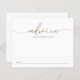 La carte d'activité baby shower présente un script de calligraphie or moderne. La carte "Conseils" invite les clients à partager des conseils pour que les parents soient au moment où ils se préparent pour le bébé.