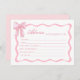 Améliorez vos jeux de douche nuptiale grâce à nos conseils personnalisés de Fête des mariées de cordonnière rose pour les cartes nuptiales. Parfaits comme cartes de conseil de la douche nuptiale et conseils pour la mariée d'être modèle, ils s'intègrent parfaitement dans un lien le thème de la douche nuptiale du noeud et inspirent cravate les idées de la douche nuptiale du noeud. Le design de l'arc charmant est idéal pour un thème de douche avant-nuptiale, apportant des idées de douche avant-nuptiale classique à la vie. Parfait pour une partie arc, coquette thème de la douche nuptiale, ou ajouter du flair aux idées de douche nuptiale rose et une douche nuptiale rose.