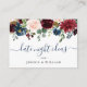 Burgundy Navy Blue Blush Floral Fête des mariées Date Nuit Idée Carte Conseil.