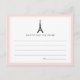 Recueillir des paroles de sagesse et des conseils pour que la mariée soit avec ces cartes douces. Le design chic rose et noir présente une illustration silhouette de tour Eiffel et un "conseil pour la mariée" en haut. Customisez avec le nom de la mariée si vous le souhaitez et placez une pile à l'entrée de l'événement, passez-les autour, ou laissez-en une à chaque endroit. Fait un beau gardien pour la mariée lorsqu'il est compilé dans un livre, une boîte de mémoire ou un classeur!