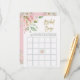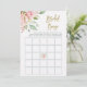 Ces cartes de bingo de mariage élégantes présentent de jolies roses aquarelles roses avec des feuilles vertes et des accents de rose doré faux, et une écriture manuscrite dorée fausse. Le dos de la carte est d'une couleur rose doux avec des bouquets floraux assortis dans les coins. Un jeu amusant et facile pour votre douche de mariée !