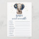 L'aquarelle porte la lune d'or et étoiles éléphant céleste baby shower mot cartes de brouillage. Réponses : 1. couche 2. hochet 3. sucette 4. formule 5. grossesse 7. poussette 8. siège auto 9. bouteille 10. pépinière