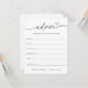 Demandez aux clients de la douche de remplir ces adorables cartes de conseils à votre douche nuptiale ou à votre douche en couple. Personnalisez le avec le nom et la date de douche de la future mariée. Doté d'un design minimaliste avec script de calligraphie pour correspondre à la collection minimaliste de jeux de Fête des mariées trouvée sur la boutique Adore Paper Co. Zazzle.