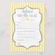 Conseil pour les cartes de fiancée en gris jaune et argent. Ce conseil nuptial élégant et amusant douche activité sport rayures jaune et blanc avec accent faux parties scintillant argent et texte argent.