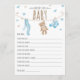 ♥ Un jeu amusant pour votre prochain baby shower ! Partagez vos souhaits pour le bébé sur le chemin! Avec un thème d'ours en peluche. Bleu, marron et blanc.