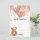 Pour une fête prénatale. Un fond blanc élégant. Décoré avec de l'or rose, des gouttes, un effet de peinture qui coule, des banderoles de fête, des ballons et un ours en peluche mignon.