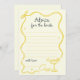 Cartes de douche nuptiales "Conseils pour la mariée", irréalistes et fantaisistes ! Ce design présente une belle arête dessinée à la main avec des illustrations d'un citron, d'une tranche de citron et d'un verre à cocktail dans un style amusant et ludique, accompagnée d'une police décontractée, manuscrite qui capture parfaitement l'excitation et la joie de l'occasion. Les cartes sont téléchargeables et viennent dans un jeu de couleurs charmant de jaune clair et doux, évoquant les sentiments de printemps, de chaleur et de bonheur. Ces couleurs complètent parfaitement le design ludique et renforcent encore l'ambiance festive de l'occasion.