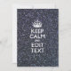 Votre personnalisation Keep Calm vous dit sur une belle décoration personnalisée dans le style brillant bleu nuit. Un style personnalisé Keep Calm en disant sur un cadeau de nature. Essayez humour ou fantaisie sur vos mots créatifs sur deux lignes de texte modifiables. N'oubliez pas d'utiliser les lettres CAPITAL pour obtenir les meilleurs résultats. Utilisez le lien "Demandez à ce concepteur" pour nous contacter avec vos demandes de design spécial ou pour obtenir de l'aide sur vos besoins de personnalisation.