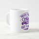 Jumbo Certains jours, une tasse de joe de taille régulière ne le fera pas. Quand vous avez besoin d'une dose de caféine en plus, utilisez votre tasse XL de Zazzle. Peut contenir jusqu'à 591 ml. Idéal pour des soupes, céréales, glaces et du chili aussi ! Cette tasse géante à une anse en forme de C pour une utilisation confortable. Dimensions : Hauteur : 4,5" Diamètre : 3,9" Capacité : 20 onces Micro-ondes et lave-vaisselle sans danger Construction céramique forte Satisfait ou dépasse les exigences de la FDA en matière de salubrité des aliments et des boissons Conseil du concepteur : Pour assurer l’impression de haute qualité, veuillez noter que l’aire de conception personnalisable de ce produit mesure 4" de haut x 10,5" de large