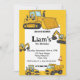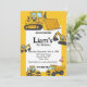 Dig up some fun with this vibrant construction birthday invitation, perfect for your little builder’s big day! This fully personalizable template features a bustling work site filled with a bright yellow excavator, dump truck, and a friendly construction worker. Designed for high-impact visual appeal, the card includes a modern clipboard layout for all your party details and a coordinating pattern on the back. It is incredibly easy to customize—simply edit the name, age, date, and location to fit your specific needs. Whether you are hosting a backyard "dig" or a "construction zone" bash, this professional, high-quality invitation is the ideal way to get guests excited. Perfect for toddlers and young children who love big rigs and tools, this invitation is a must-have for a seamless and stylish party planning experience.