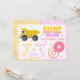Get ready for the perfect mix of big trucks and sweet treats with this fun and colorful Construction & Donut birthday invitation! Featuring a bright yellow dump truck on one side and delicious pink frosted donuts with sprinkles on the other, this design is made for a playful and unique shared celebration.