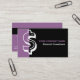 Carte de visite minimaliste noir violet consultant financier, avec le symbole du dollar en caractères gras sur arrière - plan noir et violet. Personnalisez-le avec votre texte et ajoutez votre logo, vos initiales/monogrammes. Une carte de visite minimaliste qui attire l'oeil avec un look professionnel.