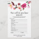 Ce jeu romantique de conte de fées "Tu connais la mariée" est parfait pour une douche de mariée à thème de jardin anglais. Le devant de la carte de jeu comporte "comment connaissez-vous bien la mariée", et le dos de la carte contient "ce qui est dans votre sac à main". Le design est composé de roses et de pivoines roses, pêche et violettes d'aquarelle disposés dans un cadre floral douloureux. Personnalisez l'avant de la carte avec le nom de l'épouse et la date de la douche de l'épouse. Conçu avec soin par Miriam à Fresh & Yummy Paperie. Pour la coordination des articles, veuillez visiter mon magasin Zazzle :