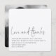 Contemporary Script Love Thanks Photo Mariage. L'amour et les remerciements se font dans un style manuscrit avec les détails en dessous. Beaucoup d'espace blanc au sommet pour une touche contemporaine ! Personnalisez facilement le reste du texte à vos propres détails et remplacez l'exemple de photo au dos par le vôtre qui changera automatiquement en noir et blanc. Si vous souhaitez supprimer le filtre noir et blanc, cliquez sur customiser plus loin et choisissez l'option de filtre et sélectionnez Pas de filtre ou une autre option de filtre.