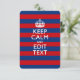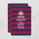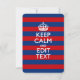 Demandez à votre personnalisation Keep Calm de dire sur ce beau cadeau personnalisé pour vous-même ou pour quelqu'un de spécial sur votre liste. Décor à rayures horizontales rouge et bleu chatoyant. Essayez humour ou fantaisie sur vos mots créatifs sur les deux champs de texte modifiables que vous voyez sur cette page de produit. N'oubliez pas d'utiliser les lettres CAPITAL pour obtenir les meilleurs résultats. Utilisez le lien "Demandez à ce concepteur" pour nous contacter pour vos demandes spéciales de design ou pour obtenir de l'aide pour votre projet de personnalisation.