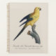 Cette image est une illustration d'histoire naturelle finement détaillée d'un jeune Ara ararauna, historiquement désigné en français sous le nom de « Guarouba dans son jeune âge ». L'œuvre d'art capture l'oiseau perché avec grâce sur une branche texturée, montrant à la fois une précision anatomique et un raffinement esthétique typiques de l'illustration scientifique précoce.
