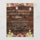 Invitation de convoi de douche de mariée rustique et champêtre sur bois sombre avec des tournesols burgundy, orange et jaune dans des pots Mason sur guirlande lumineuse pour l'automne ou l'automne - comprend une typographie de script élégante et belle pour la célébration de la future mariée.