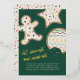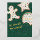 Enfants Invitations de tous âges pour décorer les biscuits de Noël et fêter la saison des fêtes avec cette invitation festive décorant les biscuits de Noël. Les biscuits en forme de pain d'épice, d'étoile et de cercle sont décorés avec plaisir avec le glaçage et une variété d'arrosées colorées. L'illustration est placée sur un arrière - plan vert avec une texture tachetée, et accompagnée de la phrase "Décorons et célébrons..." en lettres manuscrites, pressées de papier.