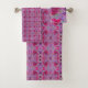 Cet Abstrait ensemble de serviettes de bain Floral est doté d'un Cool rose chaud rétro Abstrait et d'un brin de fleurs rouges avec des accents violet, vert citron, magenta, bleu et noir. Le résultat est un tableau cool, coloré, abstrait que vous adorerez !